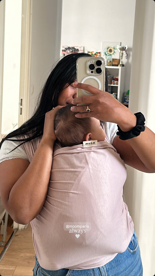 L'écharpe de portage proposée par Moom Paris se porte facilement, par-dessus les vêtements. Quel que soit le style de vos tenues, vous n'aurez aucun mal à la porter. Nos écharpes sont de jolis accessoires qui s'adaptent à tous les styles.