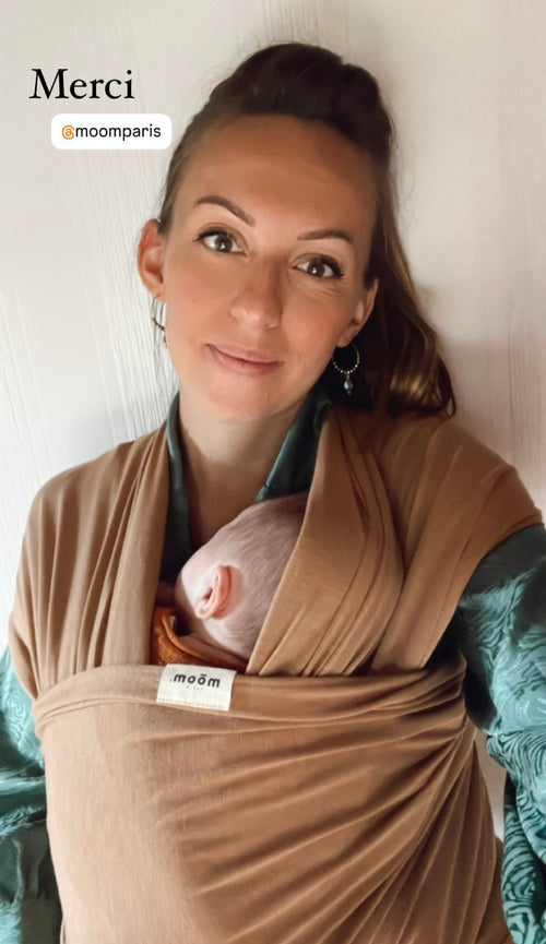 Le portage d'un bébé dès sa naissance est recommandé pour son développement. Moom Paris vous propose donc une écharpe de portage pour enfant en coloris camel. Elle a été fabriquée avec un tissu en coton bio d'excellente qualité. L'accessoire est en plus proposé à un prix attractif.
